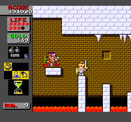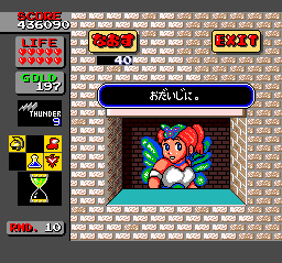 I expected the forerunner of Dragon's Curse and Dynastic Hero to let me do some exploring, but aside from the damnable labyrinth that is the final board, Bikkuriman's rounds are pretty straightforward. Maybe we should be thankful for that, as the game imposes time limits and urges us to race from checkpoint to checkpoint (an unnecessary leftover arcade element). Yes, there are secrets to uncover, but they mostly involve jumping and stumbling about to happen upon hidden coins and shop entrances.