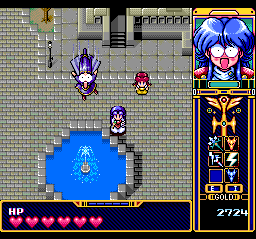 Occasionally, you'll encounter an NPC who'll ask you a question and provide you with three possible responses to choose from. These are the only parts where not knowing Japanese can be a bit of a problem, but since your options are so few, the amount of time spent on trial and error will be minimal. Get a question wrong and you might miss out on a spell or lose a heart or be sent back a ways, but it's never really a big deal.