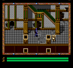 Well, I was right in thinking that Xak III would play like E&J, but the speedier of the respective avatars, the one that possesses the greater range of attack, is to be found in Brain Grey's title. I don't mind X3's imperfect combat so much (as E&J is kind of rough itself), but the sluggish shambling really annoys me. People often observe that The eternal recurrence is longer than its two-quest predecessor, but they usually neglect to mention that the added length is primarily attributable to the game having you shuffle along at an extremely slow pace (whereas its forerunner allows you to blaze across the countryside), not to mention that it forces you to trudge through a number of very large towns and structures, with nothing of note happening during the dragged-out trips.