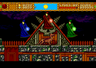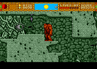 Exit the Fossil Cave, head back to the town, and save. It's now worth mentioning that if you enter the original town in any shape besides human, the guards will attack you. You should still have at least eight lives remaining, if not all nine. The mission you just completed was tough, but you're about to take on one of the most difficult segments in the entire game.