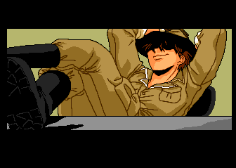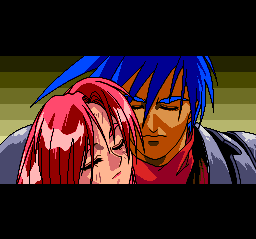 The element of visual intrigue extends to the cinemas, which utilize lots of bluish greens to give outdoors scenes an overcast look (which works quite well for gloomy old me). Intermissions are plentiful and showcase the game's cool (if occasionally roughly sketched) main characters. Amusing shenanigans are periodically interrupted by episodes of tragedy; one particularly stunning event stuck with me through the years separating my first and most recent playthroughs.