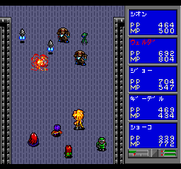 As appallingly primitive as Alshark's field graphics are, they're hardly a major concern, as the strikingly speedy characters need little time to scurry from one location to the next. Interruptions occur in the forms of overhead-view combat scenes that play out in entertaining fashion. Your party consists of heroes and heroines who wield lightsabers and mow down their foes with missiles and machine-gun fire.
