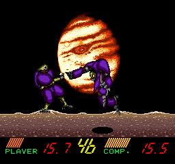 It's robot-vs.-robot combat that's simple to a fault. Micronet knew they had an all-too-basic product on their hands, so they implemented environmental effects and hazards to give players additional elements to think about. Tussling while under the influence of an abnormal level of gravity isn't as wacky or as challenging as you might believe it would be, and the fighter-decking bursts of flame are anything but massive conflagrations.
