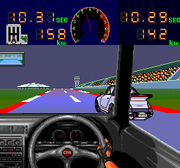 I hadn't yet played its HuCard-based predecessor when I first gave Zero4 Champ II a go, and I knew very little about the Zero4 series in general. I was quite surprised by how enjoyable the game ended up being--and by how little of the enjoyment I got out of it was owed to the seemingly salient driving element. Z4C2's straight-line street races occur only sporadically in its main play mode and conclude in matters of mere seconds.