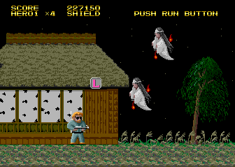 As Horror Story is a platformer of the forced-scrolling sort, those who brave it may proceed only at a pace dictated by the title itself. It's unfortunate for the unskilled and easily discouraged, then, that the game never seems to be in any hurry to get anywhere. Strips are revealed bit by minuscule bit as speedy enemies soar through the air, scurry along the turf, and even emerge from the backdrops.