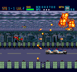 Download is a great, great shooter. The parallax-heavy graphics are incredible in some areas and deserve a lot more attention than they get (and probably would receive that attention if the game had been released in the US with fellow fancy multilayer sidescrollers Aero Blasters and Dead Moon). DL also boasts a solid soundtrack, fast action, and big bosses who hold their own by firing plenty of bullets, not to mention some well-implemented strategic elements. Pre-stage selection of weaponry is certainly not new to the genre, nor are the "vulcan vs. laser"-type choices that must be made here, but you'll find that your decisions can go a long way towards determining your fate in a given stage. Spreadshots will effectively fend off crafty enemies who move in from above and below, but concentrated beam-fire is your best bet for thwarting frontal assaults. You can boost the offensive capabilities of your armament through the addition of auxiliary missiles or elect to turtle up behind a defense barrier. Even the setting of ship speed, usually a matter handled at take-off and then forgotten about entirely, can come into play during tight segments.