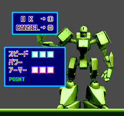 Well, in the Fighting Run universe, there are quite a few goofballs who enjoy this ridiculous brand of "competition," enough to fill the ranks of numerous circuits that you can advance through. As you proceed, you earn power points to improve your robot's speed, strength, and defense as well as a few weapons that, for the most part, aren't all that useful (though there's a cool chain-thing that enables you to harpoon an opponent stationed behind you and hurl him into perfect position for a beating).