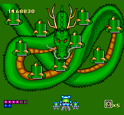 God Panic resides with Star Parodier in the PC Engine's niche of wacky/cartoony verticals, and the one you prefer might just come down to the kind of humor you enjoy in your "lighthearted" shooters. SP cleverly caricatures Soldier-series enemies while GP features a huge, weird-looking red guy with explosive farts. SP has bright, gorgeous snowfield and underwater levels while GP has you soar over an enormous bikini-clad sun bather.