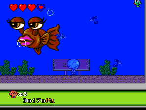 The music doesn't help. The first Bonk isn't difficult at all, but it feels exciting thanks in large part to a very lively soundtrack. Bonk III's music is very laid back and "contributes" to the game's somniferous atmosphere. And while Adventure stars some unforgettable bosses, the end-level bums here are stupid looking and stupidly easy to beat.