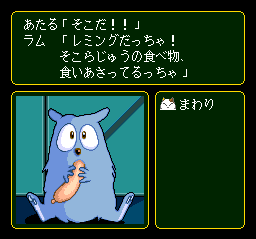 But UY suddenly rises from the doldrums with an entertaining burst at the end of its second "act" and proceeds at an above-mediocre level for the balance of the adventure. Act 3 has you visit jungles, deserts, and war zones... and congregate with bunnies at tea. You'll need to rescue your friends by finding your way across the desert, discovering passwords that grant access to prison cells, playing lever-based puzzle games, and making doorknobs out of gems. And during the brief fourth act, you'll run into a number of interesting characters, including a cyclops whom you must engage in menu-driven fisticuffs. There's even some nice art to behold at the very end.