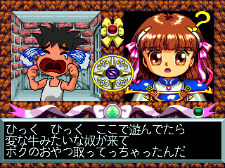 Understand that I had absolutely no intention of actually playing this game, as at the time, my extremely limited knowledge of the Japanese language seemed to negate the possibility of making headway in an import RPG. I figured that if the opening cinemas ran their course without a hitch, the game's functionality would be verified, and I could leave it to sit comfortably among my other essentially useless collectibles. But then I ran into Arle.