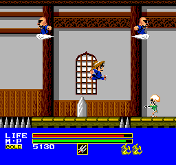 Tatsu no Ko Fighter is a dreadful action-platformer, a primitive disaster bearing disgraceful visuals. Its nature was immediately apparent to me from afar, but since conquering it is often alleged to be a nigh-impossible task, and since I'm always up for nigh-impossible tasks, I decided to give it a try. I discovered that it is indeed tough, but its challenge is of the "hard for all the wrong reasons" variety. We get a weak hero, wretched jumping controls, and abysmal collision detection in a world of countless bottomless pits; thin platforms; deadly booby traps; blind leaps; spiked floors; and really fast, really strong enemies.